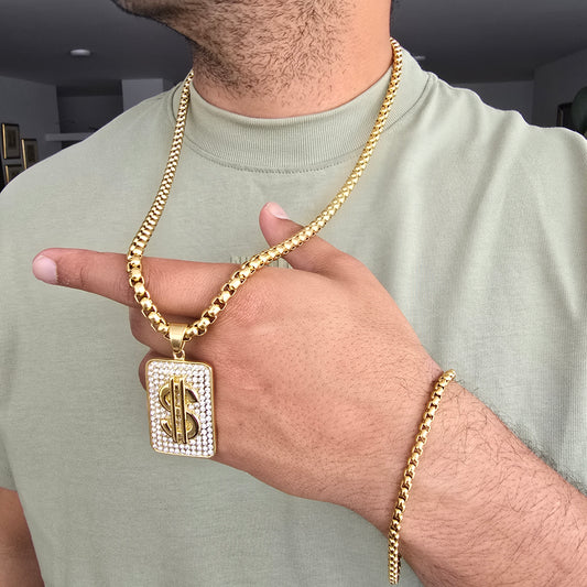 DIJE MONEY KING CON CADENA VENECIANA 6mm - 65cm