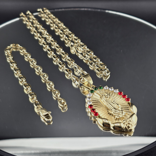 SET: VIRGEN GUADALUPE CON TEJIDO ANCLA 6mm - 65cm